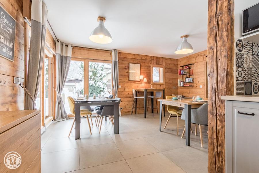 La chambre Lou Rabots (d'environ 30m²) se trouve au rez-de-chaussée du chalet et a été conçue afin de pouvoir accueillir les personnes à mobilité réduite (spacieuse, salle de bain adaptée avec douche à l'italienne...). Elle dispose d'une terrasse privée et offre une jolie vue sur le Mont-Joly. Les suites familiales "Neige" et "Ardoise" (d'environ 45m²) sont situées au 2ème étage du chalet et peuvent accueillir jusqu'à 4 personnes. La Suite "Ardoise" a même une petite chambre séparée, idéale pour les enfants. Les deux suites disposent d'un coin salon, d'une salle de bain avec douche et baignoire, de toilettes séparés et d'un balcon avec vue sur les Dômes de Miage pour l'une et sur le village et le Mont-Joly pour l'autre. Au rez-de-chaussée, le salon où sont servis les petits déjeuners reste à la disposition des hôtes que ce soit pour les repas (petit coin cuisine équipé d'un frigo, d'une bouilloire, d'une cafetière Nespresso et d'un micro-ondes) ou tout simplement pour bouquiner, se détendre ou se retrouver en famille ou entre amis. Il s'ouvre sur le jardin et la terrasse. Toutes nos chambres sont équipées d'un accès wifi gratuit et d'une télévision (TNT Sat avec toutes les chaînes françaises et les chaines d'informations étrangères). Parking privé réservé à la clientèle.