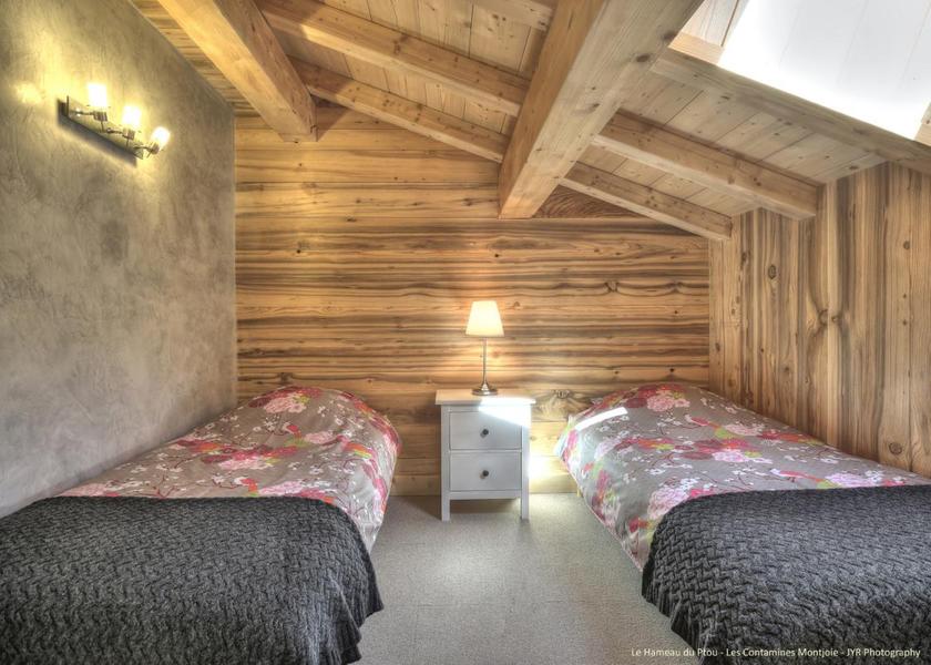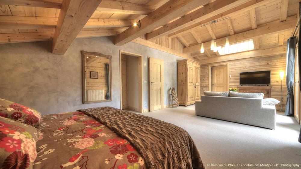 Situé en plein cœur du village, le Hameau du P’Tou dispose d’une chambre en rez-de-jardin et de 2 suites familiales mansardées avec balcon bénéficiant d’une vue soit sur le Mont Joly, soit sur les Dômes de Miage.