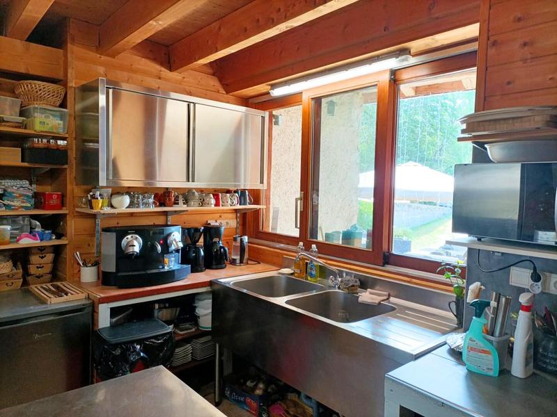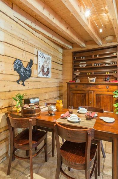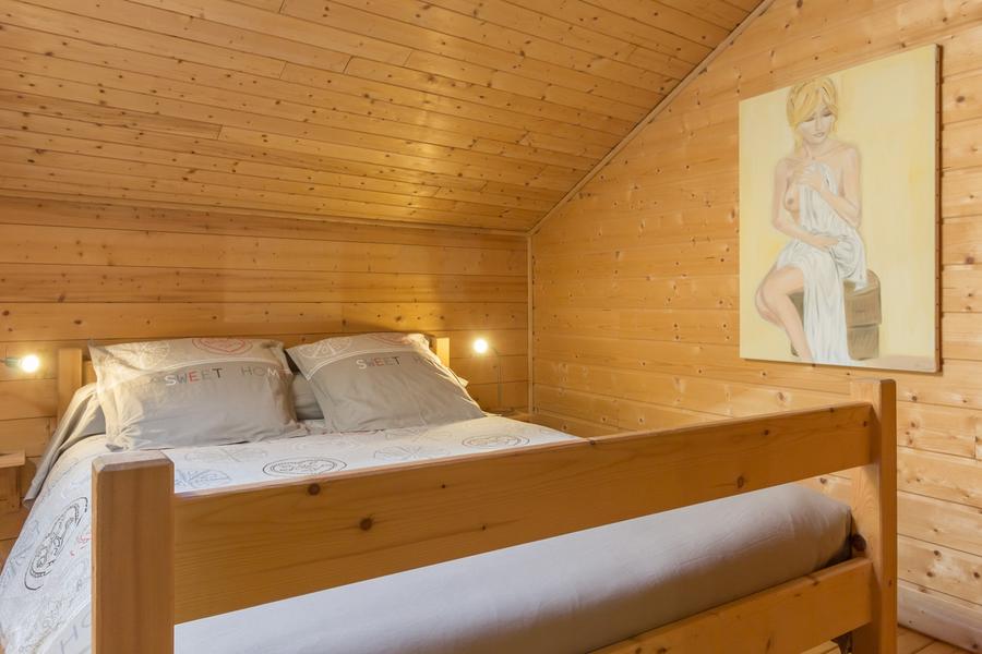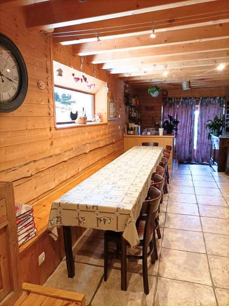 A 700 mètres du village. Accès sur un hall, un séjour avec coin salon (cheminée) pour profiter d'un moment de détente entre amis ou famille. Deux WC indépendants. Ce gîte à la décoration chalet et son ambiance cocooning, propose 5 chambres : 2 chambres - 1 lit 140, 2 chambres - 1 lit 140 et 2 lits 90 superposés, 1 chambre - 1 lit 140 et 1 lit simple. Douche et lavabo privatif à chaque chambre, 2 WC indépendants situés au même niveau. Chauffage Electrique et bois. Ski de fond et randonnées au départ du gîte, pour une étape ou un séjour, à la chambre ou l'ensemble du gîte.Pas de gestion libre