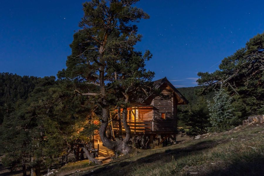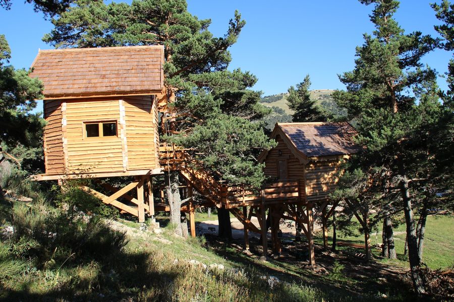 Venez passer une nuit, un week-end ou un séjour inoubliables dans les cabanes de la Moulière. Découvrez à 1h de Cannes, 40 mn de Grasse, 30 mn de Castellane et tout près de la route Napoléon, sur le site de la Moulière, 2 superbes cabanes perchées dans les arbres, vous attendent avec de nombreuses activités disponibles sur place : Le Nid des hirondelles : la cabane des amoureux 2 personnes avec possibilité d’une 3e place pour un enfant - 20 m2 Un refuge d’exception accessible aux personnes à mobilité réduite avec une passerelle et un parking spécifique à l’arrière de la cabane. Elle est décorée dans une ambiance zen. Elle est reliée à la Chaumière des Trolls - la cabane des enfants. La Chaumière des trolls 4 places - 20 m² Une cabane mystérieuse et habitée secrètement par d’étranges petits êtres malicieux, les Trolls... Nos cabanes confortables sont équipées de kitchenettes, de salles de bain, de toilettes. De vrais cocons sécurisés, isolés, chauffés et louables toute l’année. Profitez de la quiétude de l’endroit pour vous ressourcer, écouter les bruits de la nature et, pour les plus chanceux, observer les animaux de la forêt. Bougez : Via souterrata (unique en France) La plus longue cascade de tyroliennes d'Europe Télésiège et table d’orientation avec panorama exceptionnel sur la Côte d’Azur et le Mercantour Pistes de descente en VTT Spéléologie, canyoning Ski de piste, de fond et de randonnée Parapente, ULM...