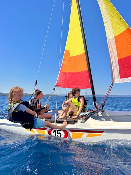 La base nautique de Porquerolles est implantée à trois endroits différents sur l'ile de Porquerolles et propose des activités nautiques diverses et variées suivant l'endroit que vous choisissez pour les particuliers et les séminaires. Au départ de la plage d'Argent location de paddle. Au départ de la plage de la Courtade, nous proposons des cours catamaran encadrés directement sur support, de 4 enfants ou 3 adultes maximum. Lors des cours, vous apprendrez à barrer ainsi qu'à régler les voiles en fonction de l'allure du bateau. Le Hobie cat est un support ludique et tolérant qui vous procurera rapidement des sensations magiques dans un cadre idylliques qu'est Porquerolles. Vous prendrez le large en toute sécurité avec votre moniteur / rice, passioné(e) de la voile, de la mer, et du littoral varois. Nous proposons également des cours de wing foil & foil tracté, qui sont tout deux des supports nouveaux de plus en plus présent sur les plages. Ces deux supports permettent de découvrir des sensations incroyables de vol, de glisse, et de vitesse. L'apprentissage du wingfoil passe obligatoirement par l'acquis des bases du foil tracté qui permet de travailler l'équilibre et la stabilité des vols. Le but est, par une action combinée du maniement de l'aile et de la planche, d'avancer au gré des vents. Les cours sont limités à 2 personnes pour favoriser votre apprentissage. A la plage Noire du Langoustier, nous proposons de la location de paddle, kayak & de palmes, masque, tubas, des balades privatives en mer, et des cours de voile. Vous pourrez effectuer de nombreux parcours à la découverte des différentes criques de la baie du Langoustier, accessibles uniquement par la mer, et vous immerger au coeur du Parc National de Porquerolles, en toute autonomie, pour découvrir une faune et flore marine exceptionnelle. Deux fois par semaine, nous proposons des randonnées coucher de soleil en paddle au départ de la plage Noire. (19h - 21h). Les cours de voile sont accessibles pour les enfants de 6 ans, les cours de wingfoil à partir de 8 ans, et les locations de paddles en autonomie à partir de 16 ans. Les heures des cours varient tous les jours en fonction des conditions météorologiques afin de vous faire naviguer dans les conditions les plus favorables pour votre apprentissage ! Je choisis mes créneaux météorologiques afin de vous faire naviguer dans les conditions les plus favorables pour votre apprentissage ! Au plaisir de vous retrouver sur l'eau !