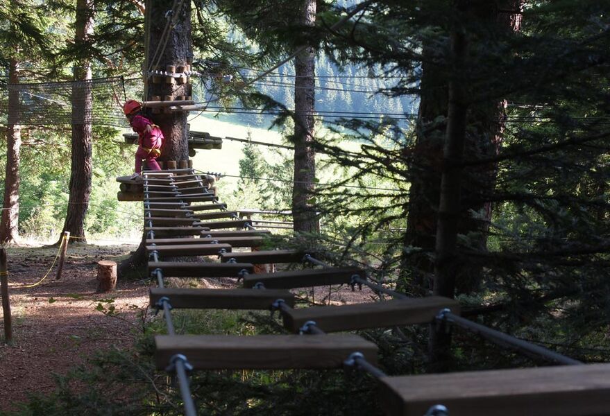 BIENVENUE AU PARC AVENTURE OISANS Votre parc aventure à Bourg d'Oisans se situe au pied de l'Alpe d'Huez, doté d'une vue imprenable sur le Pic Blanc et la Grande Lance d'Allemond. Venez découvrir un site d'exception à l'ombre des pins sylvestres. Un terrain de jeu à parcourir selon votre niveau, de la simple découverte aux défis les plus vertigineux. Pour le bonheur des plus petits aux plus grands, choisissez parmi 8 parcours répartis à travers la forêt. D'arbres en arbres, de passerelles en filets, de ponts de singe en balançoires, vous évoluerez à travers plus de 80 jeux variés (défiant vos capacités) jusqu'aux immanquables tyroliennes ! 8 PARCOURS AVENTURE DÈS 3 ANS en ligne de vie continue. 1 parcours de TEST 2 parcours JAUNE 2 parcours VERT 1 parcours BLEU 1 parcours ROUGE 1 parcours TYROLIENNE