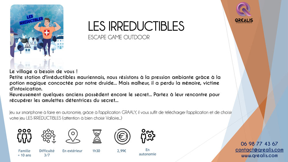 Heureusement quelques anciens possèdent encore le secret... Partez à leur rencontre pour récupérer les amulettes détentrices du secret... Jeu sur smartphone à faire en autonomie, grâce à l'application GRAALY, il vous suffit de télécharger l'application et de choisir votre jeu LES IRRÉDUCTIBLES (attention à bien choisir Valloire...)