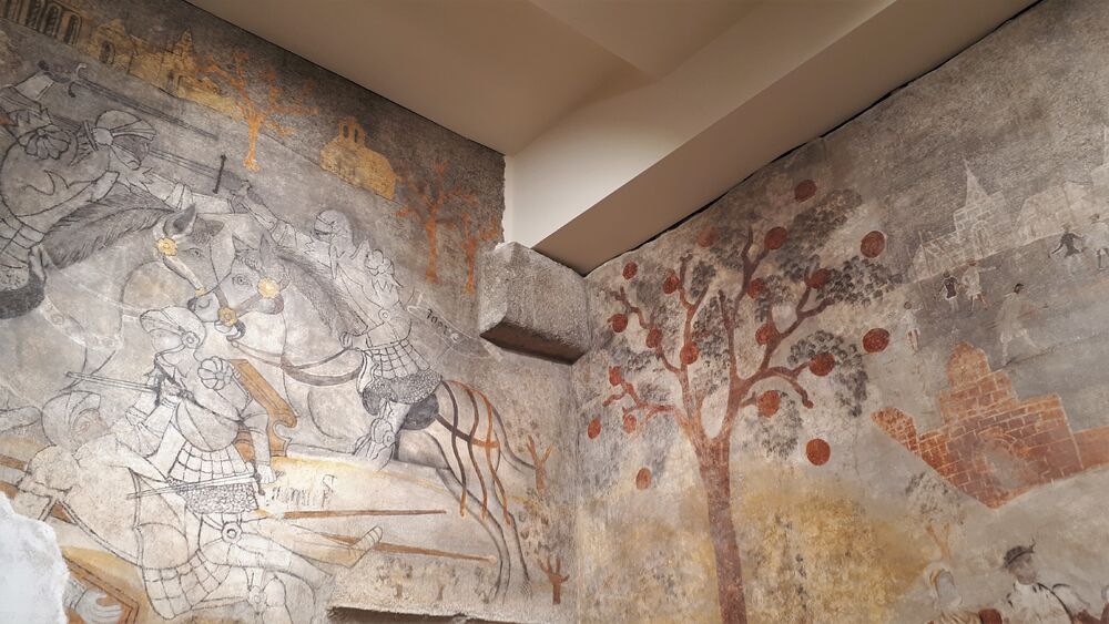 Cette belle forteresse de la fin du moyen-âge présente de très rares peintures murales de la fin du 16e siècle. On y découvre les festivités du mariage du Duc de Bourgognes ainsi que des scènes des 12 travaux d'Hercule. Incontournable !