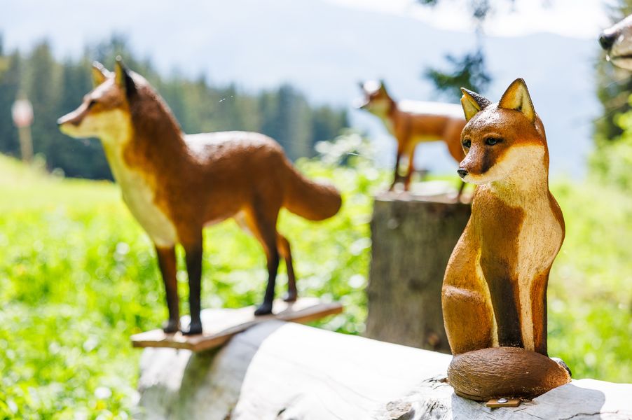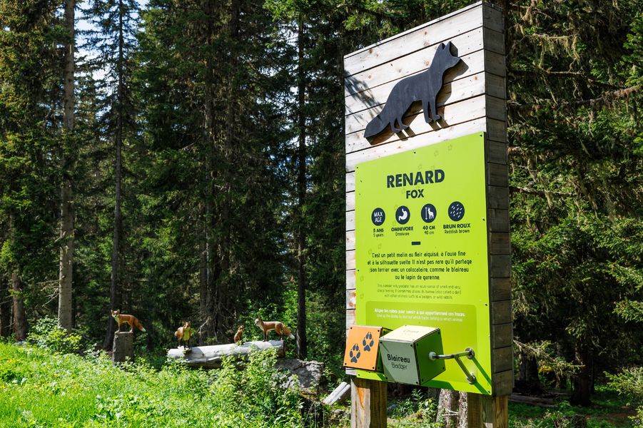 "Nous sommes là même si vous ne nous voyez pas" Un sentier balisé et agrémenté d'animaux de la forêt (grandeur nature - en résine) et leurs principales caractéristiques.