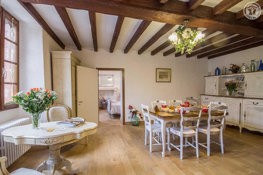 Maison chargée d'histoire (ancienne ferme des Chartreux) au coeur de l'exploitation viticole familiale (15 hectares). Hameau situé dans le vignoble réputé de Chignin, au pied du Parc Régional des Bauges.Chambres de grand confort, restaurées avec beaucoup de soin par Sylvie, la propriétaire, dans un esprit champêtre et un style vintage donnant une ambiance romantique et chaleureuse. Une suite familiale composée de 2 chambres communicantes (en enfilade). En cas de location pour 2 personnes, mise à disposition d'une seule chambre. 1er étage avec entrée commune avec les propriétaires : séjour avec coin salon, 2 chambres (1 lit 2 personnes 140 x 190 cm /1 lit 2 personnes 160 x 200cm). Salle d'eau (douche dans petite baignoire et WC) située à l'extérieur de la lit chambre, sur le palier. Salon de jardin sous la tonnelle (glycine) dans la cour goudronnée. Jardinet privatif. Garage uniquement pour les vélos ou les motos.