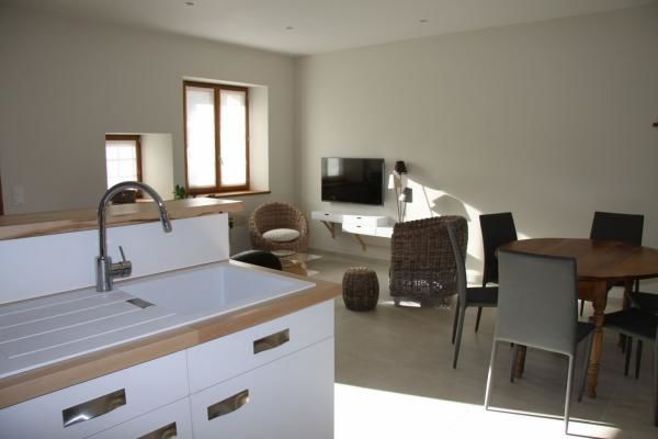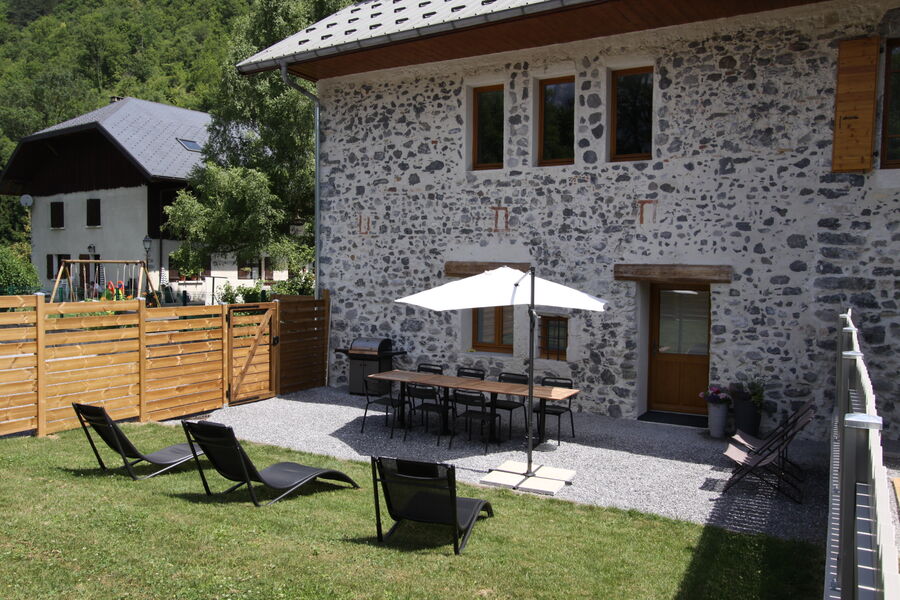 A 20 minutes d’Annecy et d’Albertville, location d’un appartement aménagé dans un style contemporain, entièrement équipé pour votre confort. Proche des plages du lac d’Annecy, des stations de ski des massifs de Savoie et des nombreuses activités de plein air, cet appartement est un lieu idéal pour des vacances sportives, détente ou nature (1° station à 10 kms, à moins d'une heure de la Clusaz et à 5 mn du lac d'Annecy). Grand séjour‐cuisine en rez de jardin et à l’étage 2 belles chambres (l'une avec 1 lit de 160 et salle de bains privative, l'autre avec 1 lit de 90 et 1 lit de 180 ou 3 lits de 90 sur demande), 2 salle de bains et 2 WC séparé, parking privé,1 place de parking sous abri, jardin avec barbecue, chaises, table, parasol, transats et chaises longues. Pour vous assurer un séjour confortable, cette location est équipée de tout le nécessaire : four, micro‐ondes, lave‐vaisselle, frigo‐congélateur, appareils à raclette et à fondue, mais aussi de sèche‐cheveux, lave‐linge, fer et planche à repasser, télévision écran plat, micro chaîne‐hifi, internet…. Des rangements sont disponibles dans les chambres, séjour et entrée. Les lits sont faits à l'arrivée, et le linge de bain est fourni !