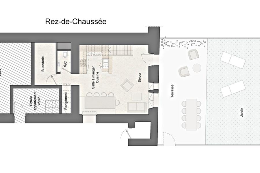 Coin cuisine au rez-de-chaussé