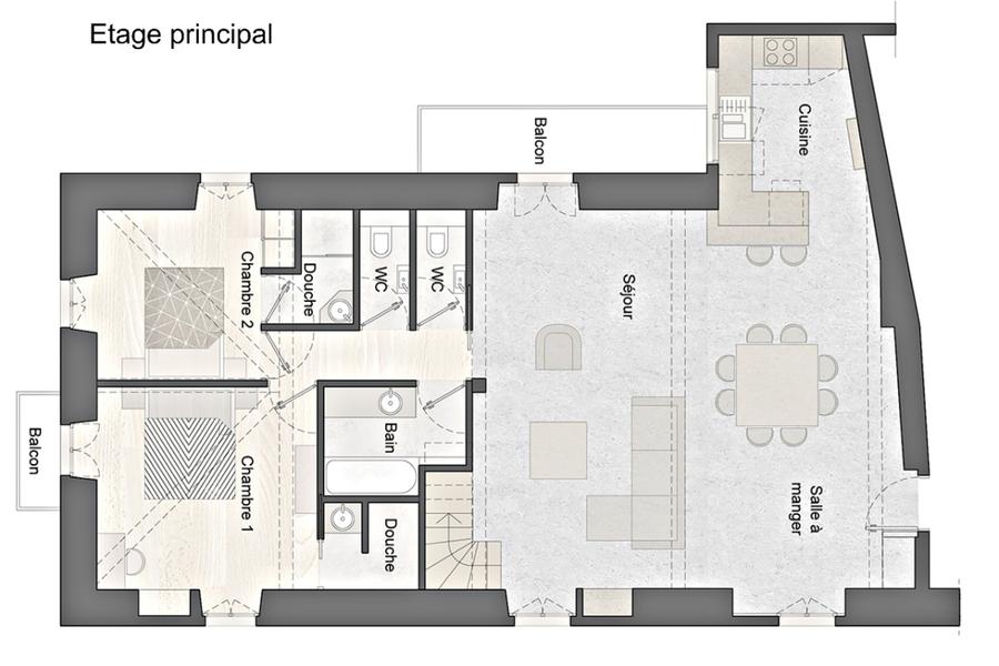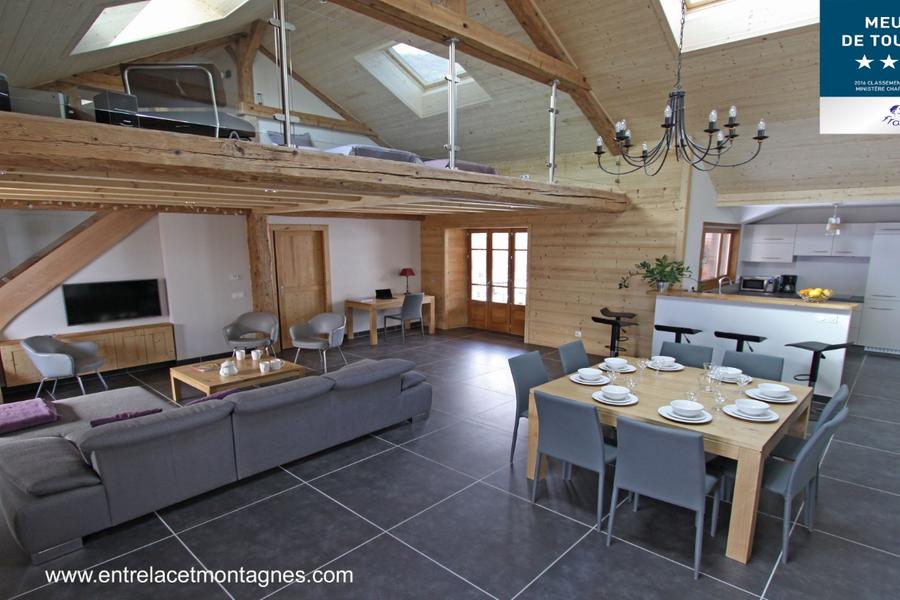 A 4 km du lac d’Annecy, location d'un superbe logement, spacieux et lumineux avec de grands volumes, aménagé dans un style épuré et contemporain avec des matériaux de qualité.