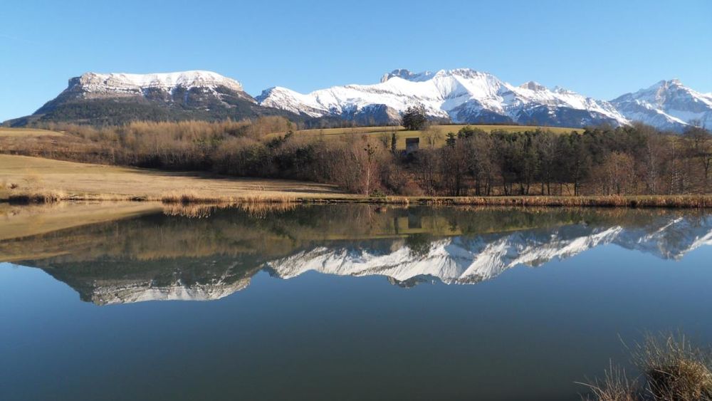 Etang situé à proximité du village de Mens, avec une très belle vue sur la chaine du Dévoluy et notamment l'Obiou et le Châtel. Site handi-pêche. Promenade familiale et poussette : le tour de l'étang environ 30 min