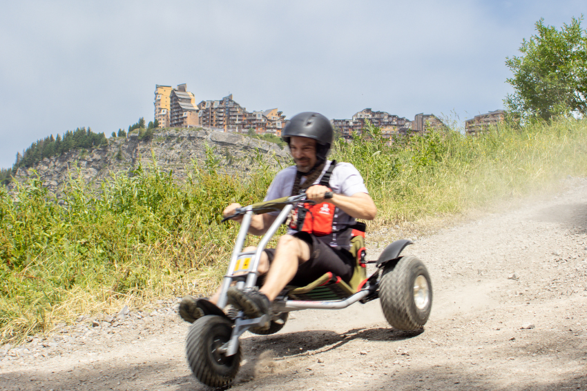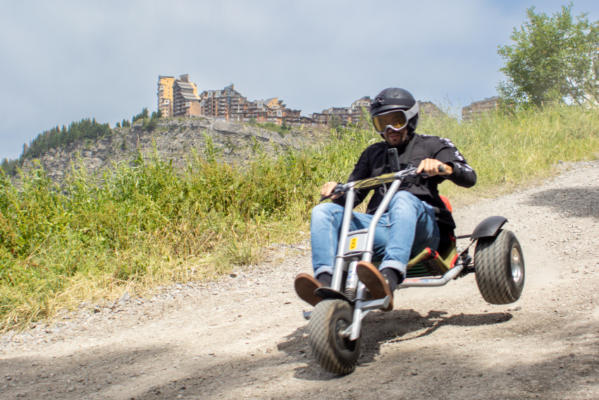 Amateur de sensations fortes, embarquez à bord ce véhicule à 3 roues équipé de freins hydrauliques et conçu avec un centre de gravité très bas pour une bonne tenue de route. Guidon en main, confortablement installé dans votre siège baquet, il ne vous reste plus qu’à vous élancer pour une longue descente de 3,2 km et 600 m de dénivelé. En hiver, pour réaliser l'activité, il faut avoir + 18 ans, taille < 1m40 et faire moins de 110kg.