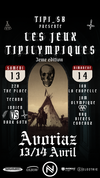 Les Jeux TiPilympiques c’est quoi ? C’est une compétition freestyle pour les snowboarders de tout niveau, ouverte à tous qui se déroulera sur le snowpark d'arare le dimanche 14 avril. Nous aurons une catégorie enfant et une catégorie adulte. Pour le reste c’est à vous de faire vivre cet évènement avec votre bonne humeur ! Pour les plus valeureux et les + 18 ans, une soirée en compagnie de snowboarders professionnels sera organisée la veille, le samedi 13 avril, au bar The Place à Avoriaz. Et pour le coup, pas besoin d’être chaussé d’un snowboard pour venir. Qui peut participer ? Tout le monde chaussé d’un snowboard peut participer : tous les âges, tous les niveaux, toutes les nationalités, le but est que tout le monde puisse passer un bon moment et reparte avec le sourire et des cadeaux de nos partenaires. Infos pratiques : L’inscription ouvrira à 10h30 sur place (snowpark de la chapelle) auprès de notre équipe sous la tente et coûtera 5 euros (à payer en espèce sur place). L’inscription comprendra la participation à l’évènement ainsi que le repas (barbecue et boisson). Nous avons la possibilité de vous proposer un forfait à tarif réduit afin de participer à l’évènement, si cela vous intéresse il faudra nous envoyer vos informations personnelles (nom et prenom) ainsi que l’endroit où vous souhaiter récupérer le forfait (les prodains, ardent ou caisses centrales) par mail à : tipi.snowboard@gmail.com