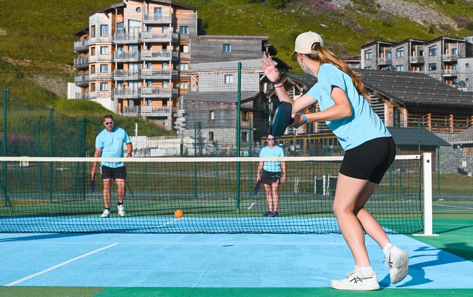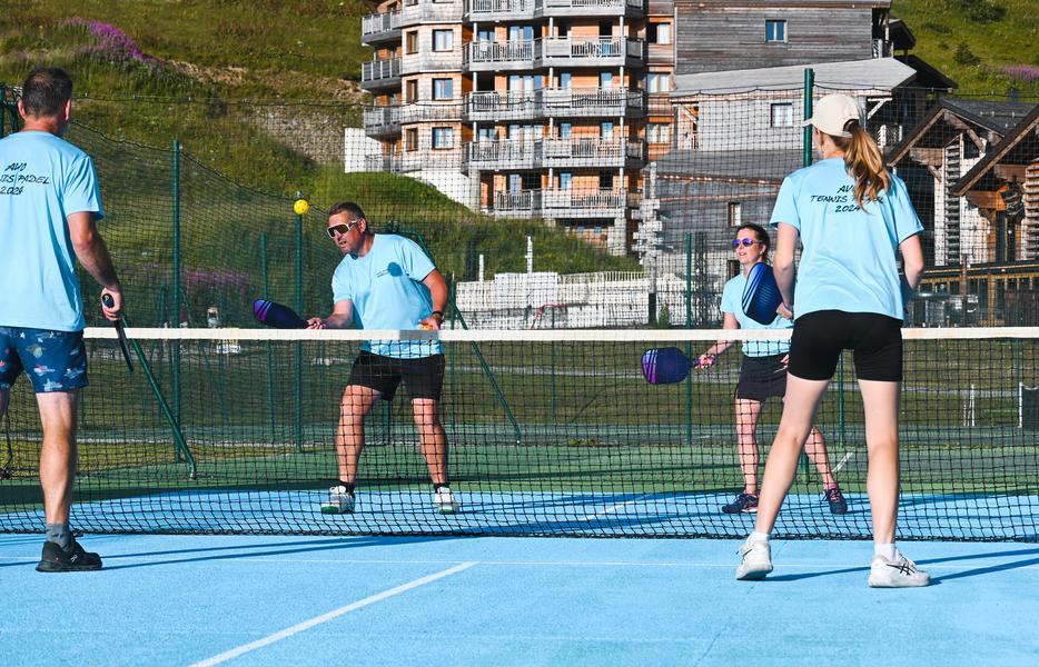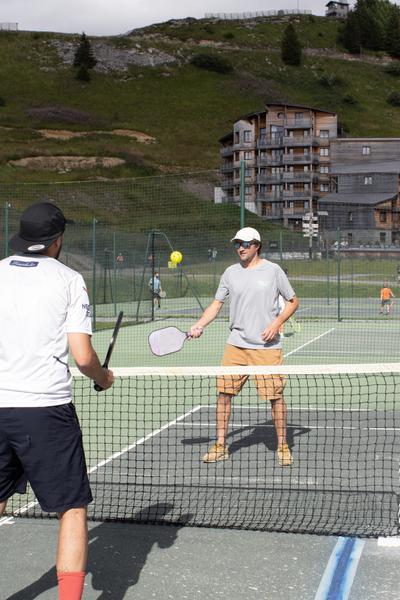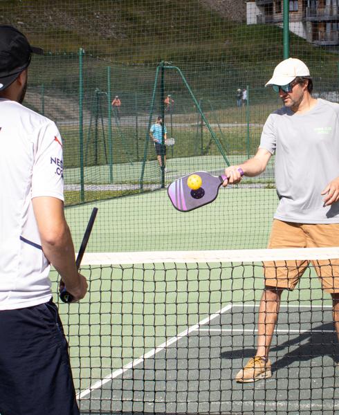 Le pickleball, aussi appelé tennis léger, est une variante du tennis traditionnel.Il se joue avec une raquette et une balle perforée en plastique sur un terrain de badminton au dessus d'un filet de type tennis.