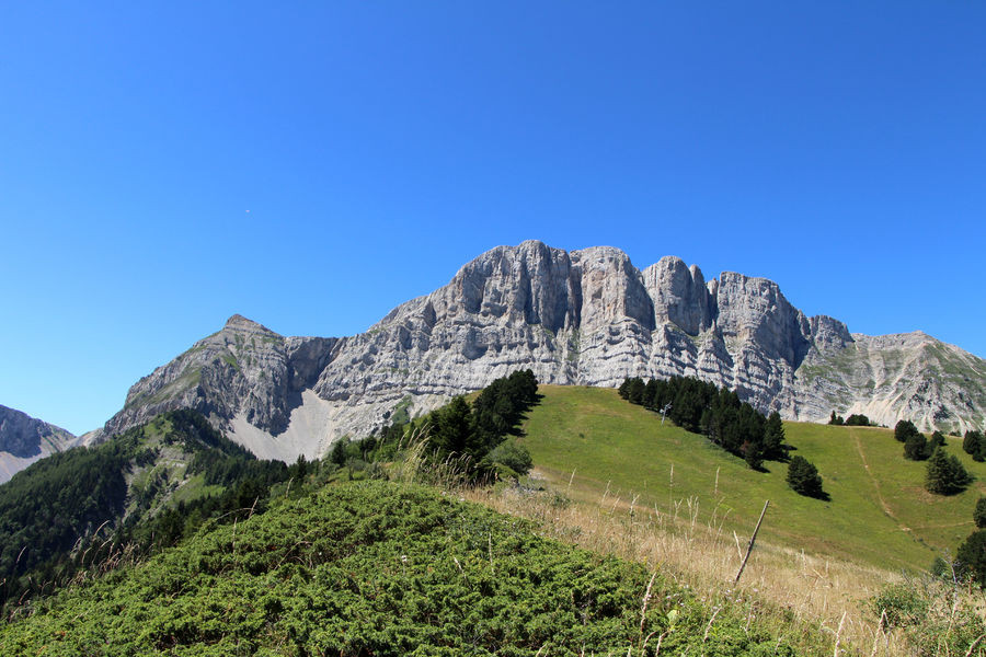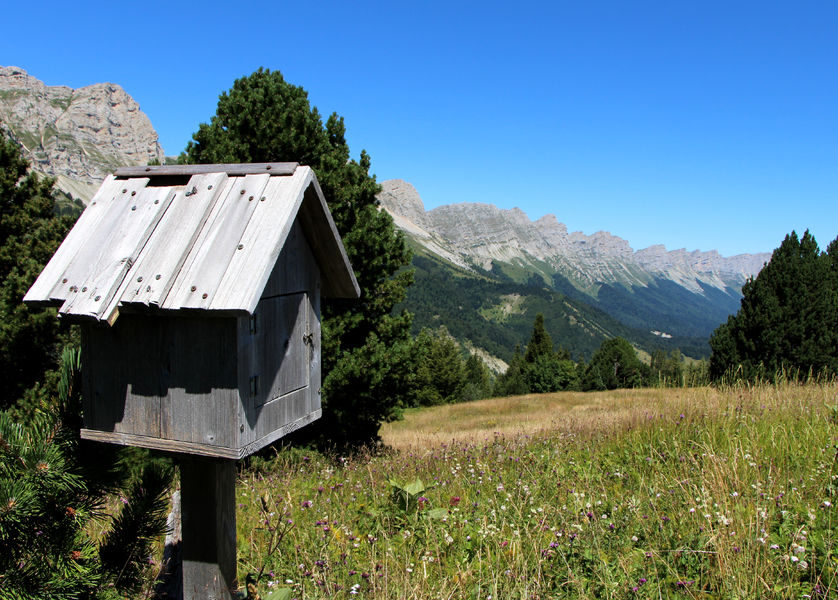 Balade variée alternant passages en forêts et passages découverts, la crête du Brisou offre de magnifiques vues sur le Mont-Aiguille et le Grand-Veymont. Deux tables de pique-nique permettent de faire une agréable pause au sommet !