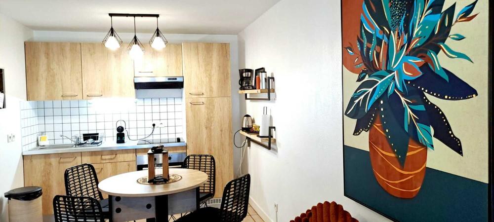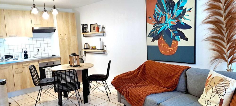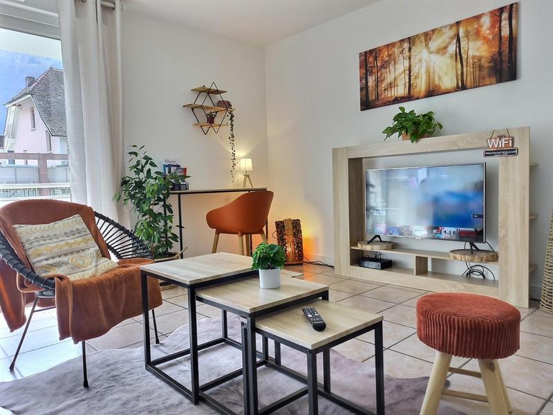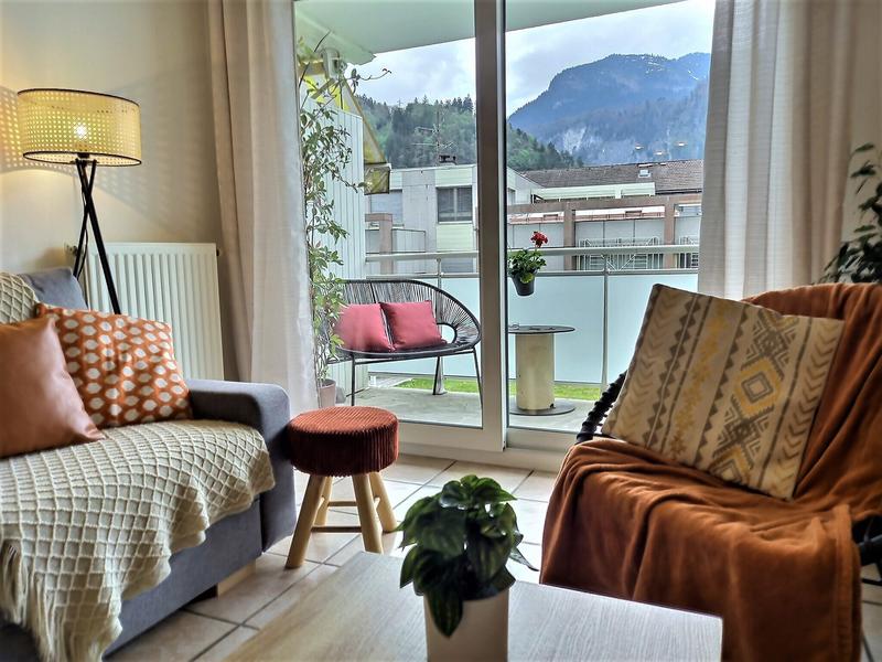 Ambiance chaleureuse et cozy en plein centre-ville de Cluses, proche de la gare et des commerces.