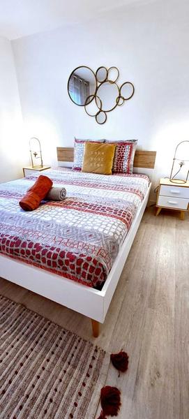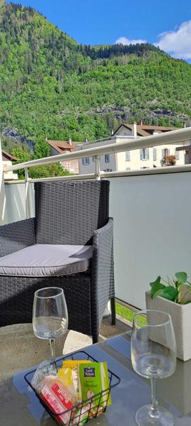 Appartement sans interphone baigné de lumière avec son ambiance Nature et Détente. Entièrement refait à neuf avec sa terrasse sans vis à vis et calme, plein sud et vue sur montagnes A disposition 1 chambre avec un grand lit 160*200 et un canapé banquette clic-clac pour un accueil de 4 personnes. Idéalement situé puisqu'à la toute proximité de nombreux commerces (50m boulangerie), de la gare, cinéma, cafés, restaurants la sortie de l'autoroute A40 est à 2 km (Cluses Centre).