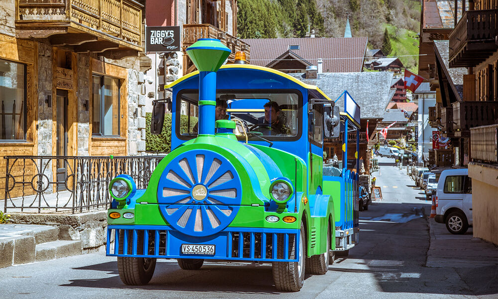 Le « Petit Train Touristique des Dents du Midi » est le moyen de transport le plus simple et agréable pour découvrir le charme du village entre panoramas éblouissants et vieux chalets typiques.