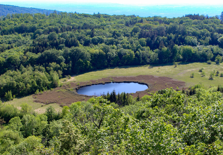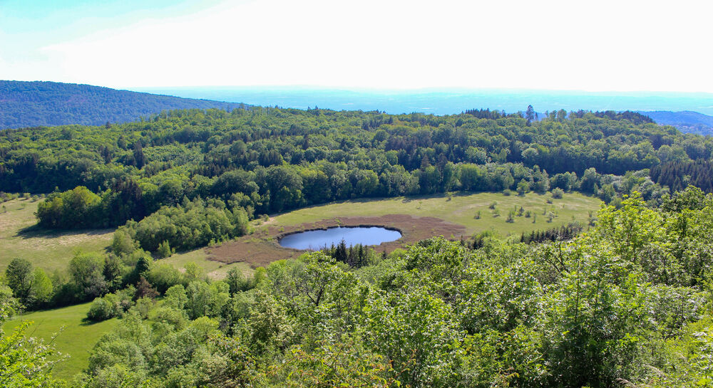 Depuis un belvédère au bord de route, la tourbière de Cerin offre au regard un disque d'eau presque parfait de 40m de diamètre. Riche en plantes rares, cet espace naturel sensible prend la forme d'un œil. Aurez-vous le courage de regarder dedans ?