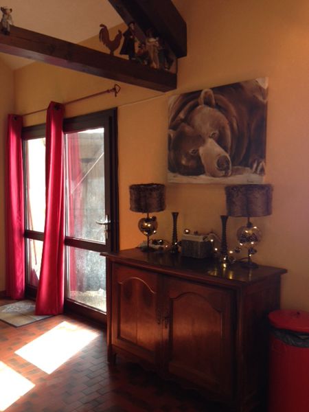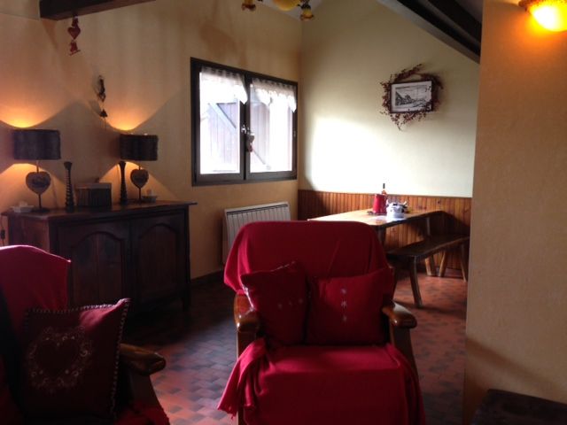 Maison mitoyenne type Vercors dans petite copropriété surplombant le village. Jolie vue dégagée. Terrain privatif et commun. Située à 400 m du centre du village. Meublé 4 pièces pour 6 personnes avec cheminée située en rez de jardin.