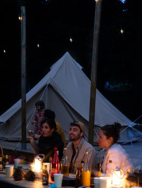 Installé au coeur de la forêt du Proclou, à côté du Lil'Stash, le bivouac Avo'Camp vous permet de vivre une nuit insolite. Vous partagerez avec vos proches une belle aventure au cœur de la nature. L'Avocamp est composé de 4 grandes tentes de bivouac en toile pouvant chacune accueillir jusqu’à 5 personnes, soit 20 personnes au maximum. Dans 2 tentes, le couchage se fait sur des matelas gonflables, dans les 2 autres sur des lits de camp : à vous de choisir celle que vous préférez ! La location est proposée pour une tente complète. Vous ne partagez donc pas votre tente avec d’autres personnes. Par contre, si vous ne réservez qu’une seule tente, la deuxième tente peut être occupée par un autre groupe, en même temps que vous. Équipements disponibles pour chacune des tentes : 5 matelas gonflables ou 5 lits de camp 1 place avec housses de protection jetables, 1 lampe de camping fonctionnant sur batterie, 1 malle de stockage métallique en extérieur, 1 bidon d’eau de 20L.