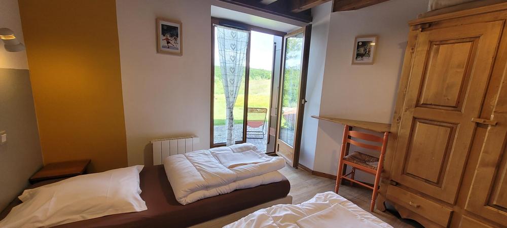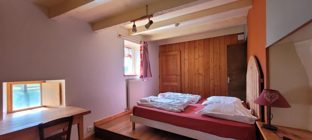 Cette ancienne ferme du 17ème siècle, entièrement rénovée vous accueille avec une grande pièce commune, salle à manger, cuisine ouverte (équipée semi-professionnelle), salon et coin bibliothèque avec une cheminée. Parfait pour les soirées jeux de société en famille. Le gîte dispose aussi d’une véranda qui s’ouvre sur une grande terrasse exposée plein sud. A l’étage, les couchages sont répartis dans 4 chambres avec salle de bain. Une chambre « printemps » avec 5 lits de plein pied, une chambre « été » avec un lit 2 places, une chambre automne avec 6 lits superposés et une chambre « hiver » avec 4 lits de plein pied. Autour du gîte vous pourrez profiter de plusieurs aménagements : un grand pré, un potager, un barbecue abrité, un terrain de jeux (foot, volley pétanque), une balançoire et une cabane pour les enfants, un sauna. Et aussi des locaux pour ranger les skis, les raquettes ou les vélos. La bâtisse est équipée d’un lave-linge . Cet emplacement est idéal pour rejoindre directement les pistes de ski de fond, les sentiers raquettes et les pistes de luge ou de ski alpin à la station des Plans d’Hotonnes ou encore le stade de biathlon et le futur stade de VTT ( été 2024) . Vous retrouverez au cœur de cette station une école de ski (ESF) pour apprendre ou vous perfectionner dans les disciplines hivernales comme estivales. Parcours permanent d'orientation, stade de biathlon, stade de VTT et pumptrak( mi 2024) roller, location de vélos, vtt électriques, karts pour enfants , trottinettes électriques, swincart electrique…. Randonnées à cheval A 10 mn à pieds, bergerie, fromage de brebis, yaourts. Repas à la ferme (accueil paysan). A 45 mn à pieds environ, panorama de la chaine des Alpes et des lacs Léman, Annecy.... A 10 mn en voiture : traite des vaches, fromagerie, randonnées avec des ânes A plus ou moins 15 mn : Plan d’eau surveillé (de juin à fin aout), Lac de Nantua, Le village des étoiles -école d’astronomie. A environ 30 mn : parcours aventure pour tous et handicapés, le Grand Colombier (étape Tour de France 2023), espace aventure des grottes du Cerdon et cuivrerie musée, Dinoplagne la plus longue trace de dinosaure du monde ! Lac du Bourget.