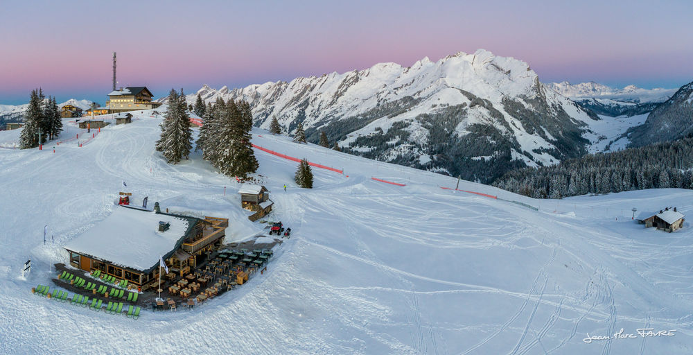 Perché sur le plateau de Beauregard, le Grizzly offre un panorama exceptionnel et une grande terrasse ensoleillée, l'hiver comme l'été. Instagram : grizzlymanigod Le Grizzly est privatisable pour l'organisation de tous vos évènements