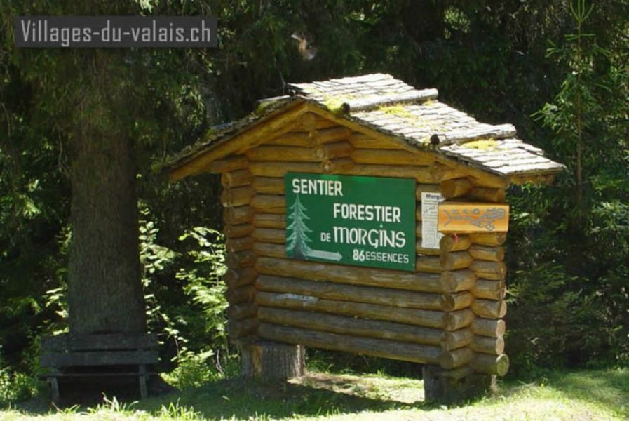 Morgins parking du 6 août - Tir au Pigeon - Eau Rouge La balade vous invite à découvrir la diversité des ligneux de nos forêts de montagne. Au fil des 2 km d'un sentier facile et agréable, près de 90 arbres ou arbustes y sont repérés et étiquetés, permettant ainsi d'observer la plupart des espèces forestières de la vallée, et même quelques unes de leurs cousines introduites ici dans un but pédagogique.