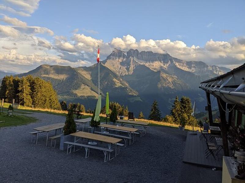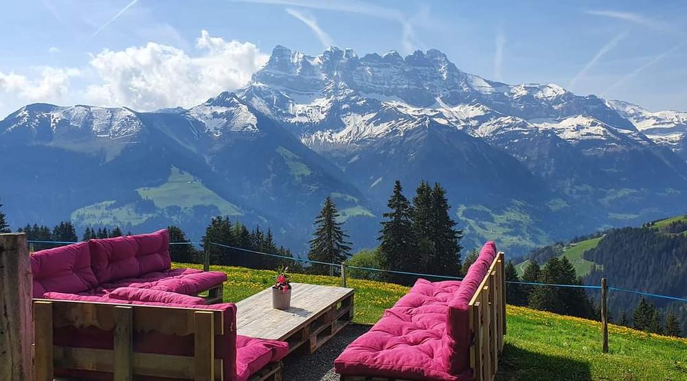 À 1550m d'altitude, orienté plein sud, le chalet Chanso offre aux visiteurs et randonneurs un panorama exceptionnel sur les Dents du Midi et les Alpes vaudoises.