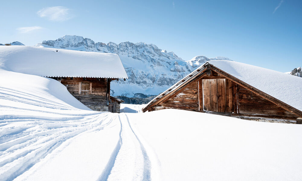 Le départ des sentiers raquettes se trouve au sommet du téléphérique de la Croix-de-Culet (voir le drapeau rose Start). Sortir du batiment du téléphérique et prendre tout droit en direction des Crosets. Puis bifurquer à gauche pour ensuite traverser la piste de ski (attention aux skieurs) selon le balisage. Arrivé au restaurant «Refuge du Chaudron», passer le long de la retenue collinaire (lac au lieu dit «Sur le Joueur»). A la bifurcation, rester sur votre droite (bien suivre le n° 11). L’arrivée se trouve à Chaupalin. Profitez d'une halte revigorante à la Buvette «Chez Yoyo et Jiby», un panorama splendide sur les Dents du Midi (3257m), le massif du Ruan (3220m) et les Dents Blanches (2760m) s’offre à vous. Vous surplombez alors le vallon des Crosets et sa station. Le retour se fait par le même chemin qu’à l’aller.