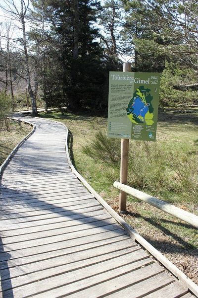 Sentier pédagogique aménagé sur caillebotis pour pénétrer au cœur d'une tourbière. Les panneaux qui jalonnent ce parcours de 1km permettent à tous de découvrir et d'observer la faune et la flore. Là, au mois de juin, tout s'éveille : les libellules virevoltent et les linaigrettes agitent leurs pompons blancs dans le vent. Au milieu de la tourbière, vous apercevrez d'étranges installations ; il s'agit d'appareils de mesure destinés à mieux connaître ce milieu, son fonctionnement, son histoire et son avenir. Départ : Parking de la tourbière. A Saint-Régis-du-Coin, prendre la direction du Tracol par la D28, à la Rouchouze prendre à gauche, direction "Tourbière de Gimel" Durée : 0h30 pour 1km