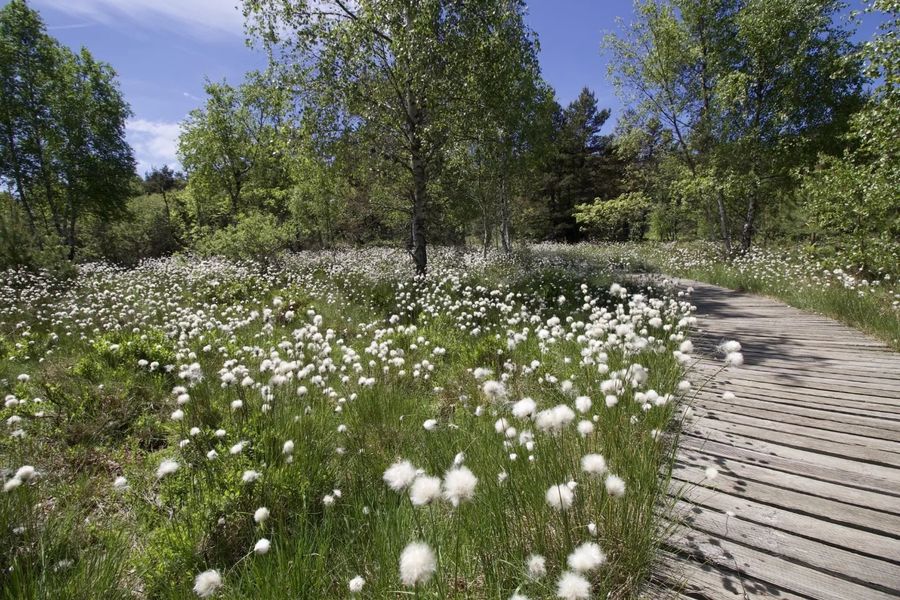 Drôle de sentier que ce long ruban de bois posé au-dessus de la tourbière ! Grâce à lui, on accède à cette zone humide et fragile sans la piétiner. Sentier pédagogique avec panneaux permettant de découvrir et d'observer la faune et la flore.