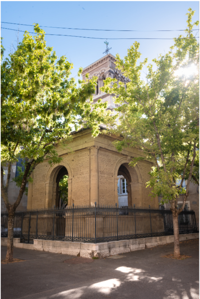 Vendu comme bien national en 1796, la crypte sert à la fin du XVIIIème siècle de cave et de fosse d’aisance. Racheté par la Ville, le Pendentif fut l'un des premiers monuments classés en France (1840) trois ans à peine après la constitution de la Commission des Monuments Historiques et le passage de Prosper Mérimée dans la Drôme. "Ce monument funéraire, construit en 1548, occupait le centre du cloître situé au nord de la cathédrale. Son commanditaire est Nicolas Mistral, chanoine de la cathédrale de Valence. Vendu comme bien national en 1796, il est acquis par Antoine Gallet, liquoriste, qui le convertit en débit de boissons. Racheté par la Ville de Valence en 1831 et restauré, il est inscrit sur la première liste des édifices classés monuments historiques en France (1840). Son architecture caractéristique de la Renaissance renvoie aux grands modèles de l’Antiquité. Il doit son nom usuel à la disposition des blocs de pierre de sa coupole semi-circulaire sur pendentifs. Sur les faces extérieures, au sein d’un décor vermiculé fait de sillons sinueux, très prisé durant la Renaissance, on devine encore un riche réseau sculpté fait de rinceaux et de masques ainsi que la fameuse salamandre du blason de François Ier." © Service Ville Pays d'Art et d'Histoire Valence Romans Agglomération