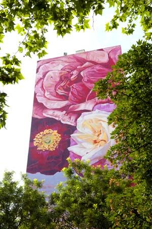 Mur peint racontant l'histoire de la rose lyonnaise au XIX° s, quand, au Bachut, se trouvaient des roseraies à perte de vue. Il a été réalisé grâce à la "Société des Roses Anciennes en France" par la Cité de la Création et inauguré en juin 2011.