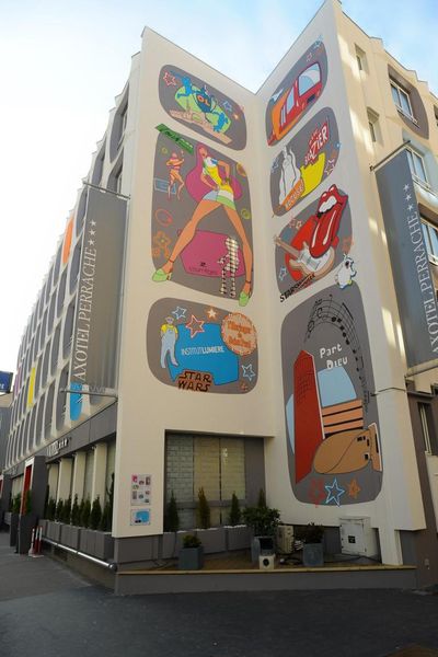 Mur peint de 150 m² sur le thème des années 70, il fut conçu par Michel Rodrigue et David Pellet sur un mur de l'hôtel Axotel.