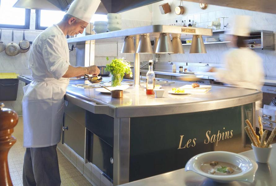 Avec sa vue panoramique et la savoureuse cuisine du terroir de son chef, le restaurant de l'hôtel des sapins ouvre de magnifiques horizons gourmands ! Aux fourneaux, Jacques Ollier élabore une cuisine raffinée composée de beaux produits du terroir minutieusement sélectionnés selon les saisons afin de garantir fraîcheur et authenticité des mets. Ainsi, dans les assiettes se succèdent, entre autres : croustade aux champignons, velouté aux châtaignes, truite aux écrevisses, foie gras de canard, escalope de veau sauce Chardonnay… Les créations sucrées de Charlotte Ollier, diplômée de l’Ecole Nationale Supérieure de Pâtisserie à Yssingeaux, invite au péché de gourmandise. Toujours en recherche, elle saura vous surprendre par ces présentations, ses couleurs et ses saveurs ! Le restaurant des sapins, c'est la garantie d'une belle aventure culinaire à découvrir en formule demi-pension lors d'un séjour, entre amis ou en famille dans l'ambiance chaleureuse de l'élégante salle du restaurant lumineuse. Aux beaux jours, le restaurant s'ouvre sur l'extérieur avec son agréable terrasse.