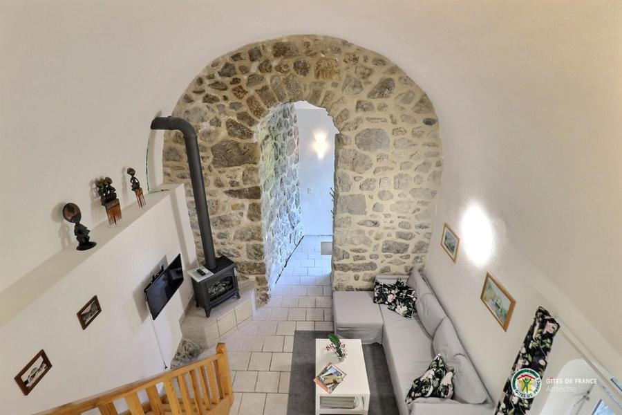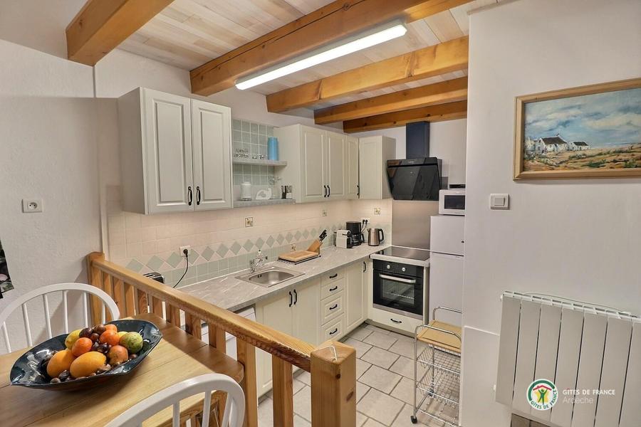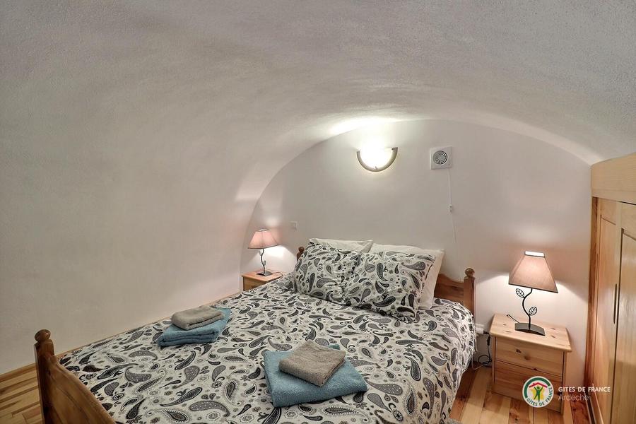 Chaque appartement/gîte dispose de sa propre terrasse, orientée plein sud, ce qui permet de savourer ses repas à la manière de la France méridionale. Une grande piscine est à la disposition des hôtes de la Rastelayre mais rien n’empêche de se baigner et même de nager dans la rivière. De nombreux endroits ensoleillés ou ombragés permettent de se détendre ou de pique-niquer en famille. Avec une surface au sol de 45m², 'La Petite Cave' est un logement confortable pour 2 personnes (4 est possible). Elle a une chambre en mezzanine avec un lit double (160cm x 200cm). Le séjour inclus un canapé-lit se transformant en un lit double. La cuisine américaine est bien équipée et la salle des bains a une douche, wc et lavabo. La terrasse est équipée avec des meubles de jardin, un parasol et un barbecue. Le jardin, la rivière, la piscine, les terrasses sur la rivière et la piscine, le jeu de boules, les hamacs etc. sont à la disposition de nos hôtes.