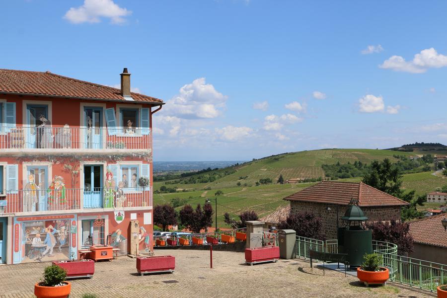 Clochemerle (de son vrai nom Vaux-en-Beaujolais), est un joli village haut perché, situé au coeur du vignoble Beaujolais. Ce surnom lui vient du truculent roman éponyme de Gabriel Chevallier, qui connut un succès phénoménal à sa sortie en 1934. Sur la place de ce village insolite, retrouvez les personnages du roman sur la superbe fresque, haute en couleurs . Regardez le théâtre automatique et écoutez nos jardinières parlantes qui vous racontent quelques scènes cocasses ou poétiques. Pour comprendre qui était Gabriel Chevallier, l'auteur de Clochemerle, visitez le musée qui lui est dédié : une vidéo vous présente sa vie et son oeuvre, des dessins et peintures de sa main vous permettront de découvrir un artiste talentueux. Le musée, le théâtre automatique sont des animations gratuites ouvertes toute l'année aux horaires de la cave de Clochemerle. Ne manquez pas la visite de la Cave de Clochemerle : l'un des plus anciens et des plus beaux caveaux de notre région, où vous dégusterez une belle sélection de Beaujolais-Villages. En sortant du caveau, vous passerez à côté de la fameuse pissotière et pourrez continuer la découverte avec une balade qui vous emmènera sur les hauteurs du village (environ 20 min. à pied), en suivant les personnages grandeur nature, disséminés dans les rues, et qui vous montrent la direction à suivre. Entre fiction et réalité, plongez dans l’univers folklorique de Clochemerle! L'histoire de Clochemerle, en quelques mots : Le roman commence en 1922, lorsque Barthélémy Piéchut, maire de Clochemerle-en-Beaujolais, décide de moderniser son village et fait construire un urinoir. L’emplacement choisi, tout près de l’église, n’est pas un hasard mais bien une provocation. Une polémique va alors éclater entre les villageois, qui vont se scinder entre laïcs « urinophiles » et cléricaux « urinophobes ». Sous couvert de l’humour et de la caricature du monde rural, Gabriel Chevallier réussit une superbe satire des travers humains, de la société, et du monde politique, toujours très actuelle. Traduit en 26 langues, Clochemerle fut vendu à plusieurs millions d’exemplaires, inspira de nombreuses adaptations au cinéma, au théâtre, à la télévision et fut l'un des plus grands succès littéraires du XXème.