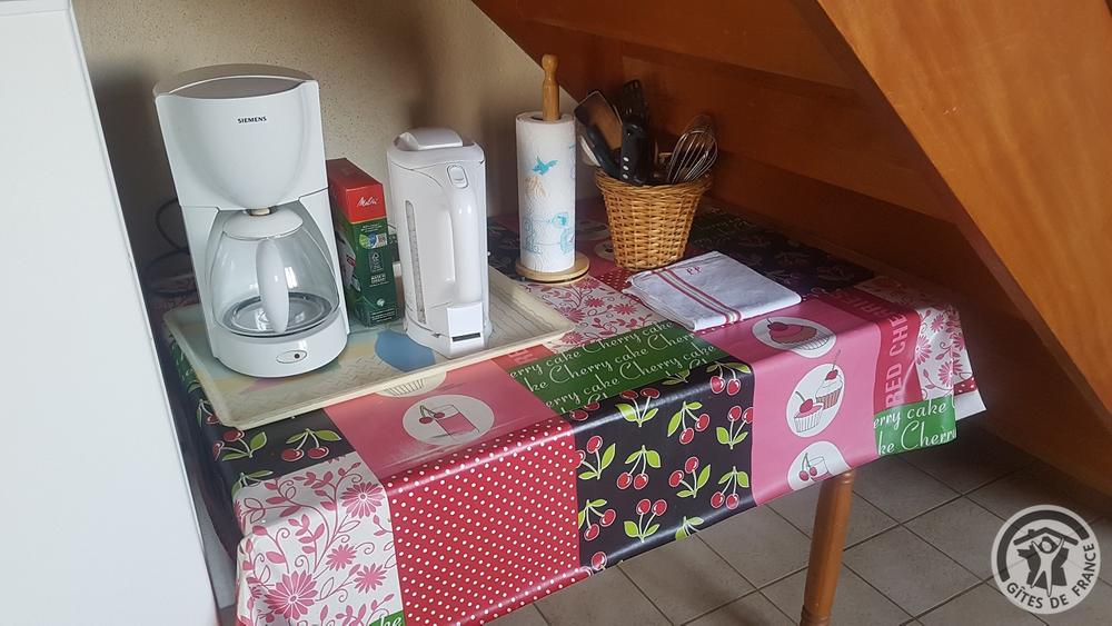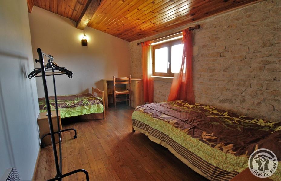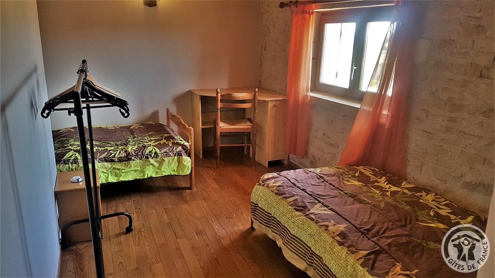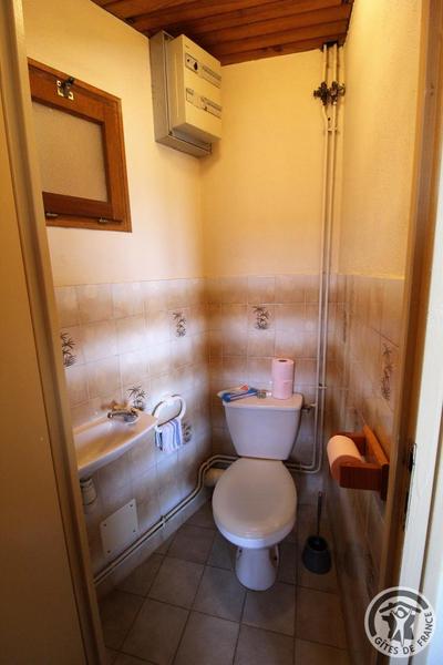 R.d.c. : séjour avec coin-cuisine, salle d'eau, wc. Etage : 2 ch. (1 lit 2 pers., 2 lits 1 pers., 1 lit enfant, poss. lit suppl.), téléph. (carte France Télécom). Chauffage électrique (électricité payant au delà de 200KW consommés par semaine. A l'extérieur : terrain aménagé non clos, salon de jardin.