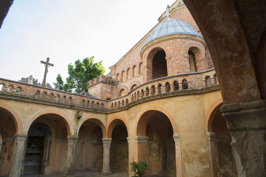 Elément très rare du patrimoine bâti en France. Il s'agit d'un bâtiment cloître, construit en briques rouges en 1852 par le Chanoine Courty, qui au retour de plusieurs voyages en Italie, s'est inspiré des fresques de Giotto.