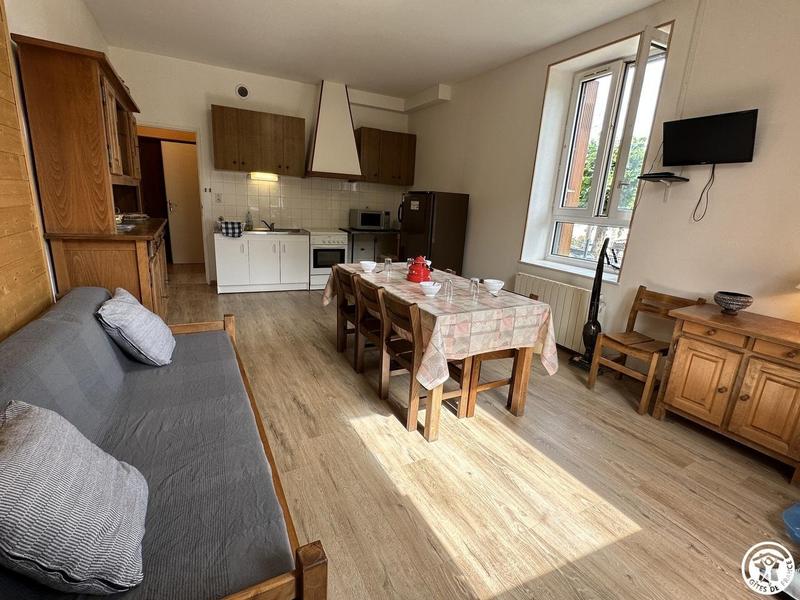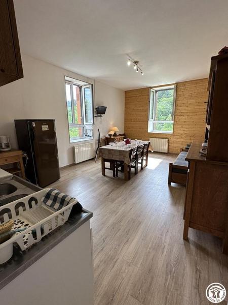 Dans le cadre bucolique du hameau de Napt à Sonthonnax-la-Montagne, ce gîte spacieux de 74 m², situé au rez-de-chaussée d'une ancienne école, vous invite à profiter d'un séjour en pleine nature, au cœur de l'Ain. Entouré de chemins de randonnée, il est le point de départ idéal pour découvrir la richesse des paysages environnants, du plateau du Retord aux majestueuses montagnes du Jura, sans oublier le lac de Nantua ou la vallée de l'Ain. Cette location de vacances (rénovée sols et murs début 2024) se compose d'un vaste séjour avec un coin cuisine tout équipé et un canapé pour des moments de détente après vos escapades. Il dispose de deux chambres : l'une avec quatre lits simples (90x190), parfaite pour les familles ou les groupes d'amis, et l'autre avec un lit double (140x190). Une salle de bain et des toilettes séparées complètent cet espace, conçu pour votre confort. À l'extérieur, vous bénéficierez d'un terrain non clos partagé avec un autre gîte situé à l'étage. Vous pourrez profiter du salon de jardin commun pour vos moments de détente ou d'un barbecue convivial en plein air. Une connexion internet est à disposition, et un forfait ménage est proposé pour plus de confort. Le chauffage électrique assure une atmosphère agréable en toute saison. Fidèle à la Charte "J'accueille des Wouafer's chez moi", nous acceptons vos chiens (jusqu'à 2 par séjour) avec grand plaisir. À leur arrivée, ils trouveront une gamelle d'eau fraîche, ^des friandises, des cani-sacs et un coussin pour dormir confortablement, pour un séjour tout en douceur. Que vous soyez en quête de randonnées en pleine nature, d'un cadre tranquille pour vous ressourcer ou d'un lieu convivial pour des retrouvailles entre amis ou en famille, ce gîte spacieux vous offre tout le confort nécessaire pour un séjour inoubliable dans une région riche en découvertes naturelles et culturelles