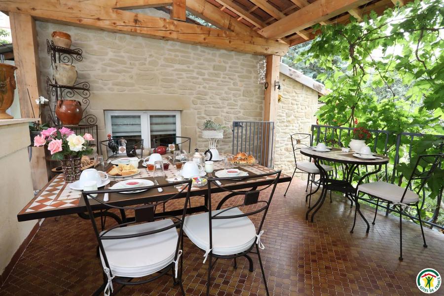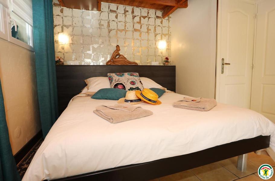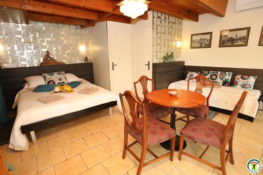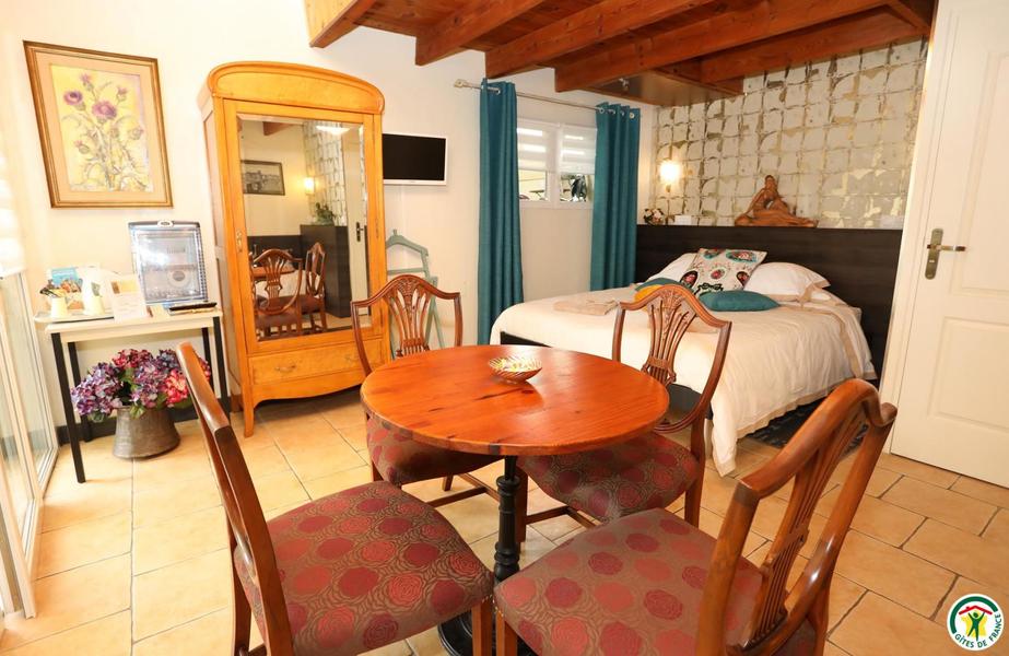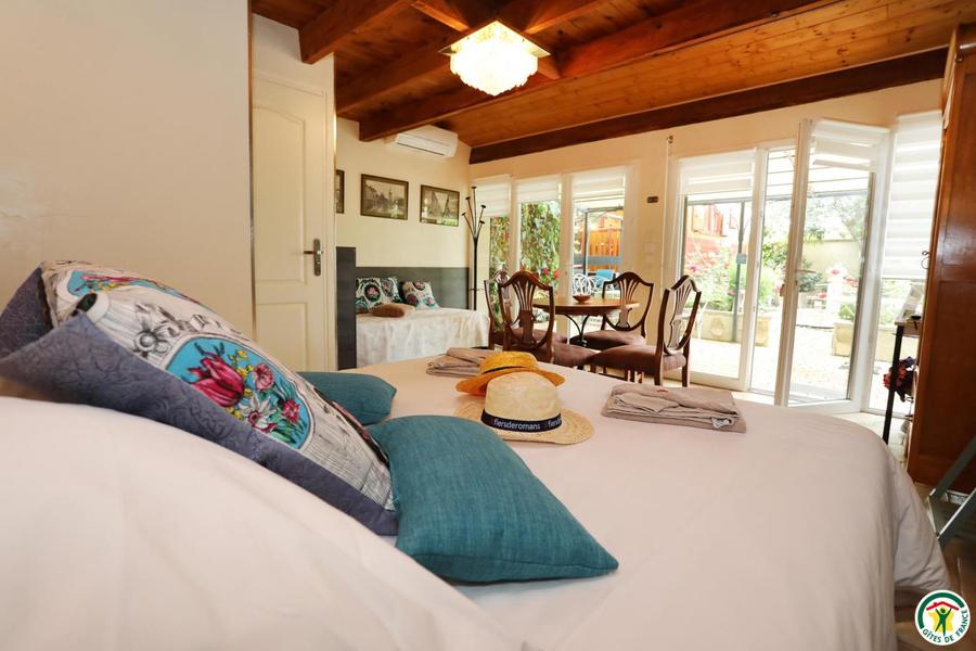 La chambre équipée de 2 à 4 personnes et la roulotte de 2 personnes, aux décorations raffinées, sont amménagées dans 2 aires indépendantes avec un accès de plain pied sur le joli jardin et les terrasses. Le petit déjeuner sera servi, selon les saisons, dans la chambre, sur la terrasse ou dans la salle à manger des propriétaires. Table d'hôte sur réservation.