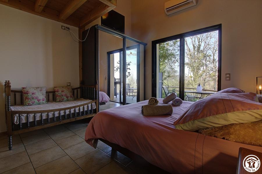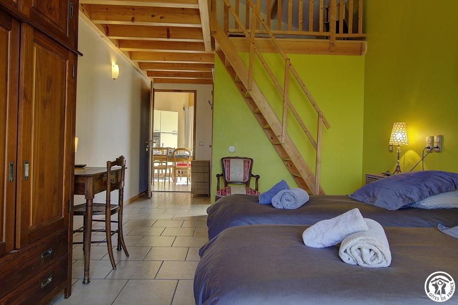 Chambre Chants d'oiseaux avec vue sur la pièce commune.