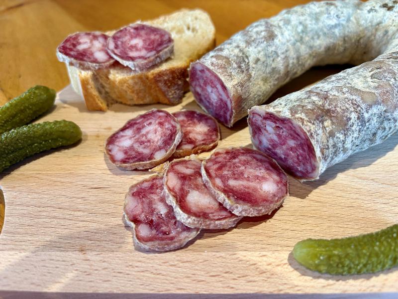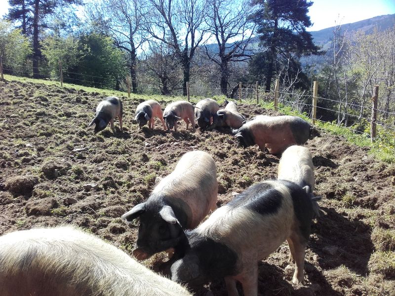 Sur les hauteurs de Saint-Sauveur-en-Rue, exploitation familiale de porcs et de vaches Aubrac certifié bio. Explication des procédés de fabrication, dégustation des produits et vente à la ferme.