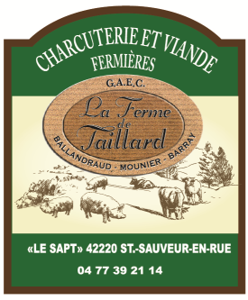 Exploitation située à la lisière d'une grande forêt de sapins nommée Taillard. Charcuterie fabriquée sur la ferme depuis plus 1984. Les porcs naissent et sont élevés sur notre exploitation, nourris sans OGM avec un aliment fabriqué à la ferme à base de céréales. La viande bovine de race Aubrac est produite en Agriculture biologique. Vente à la ferme, marché de Bourg-Argental, magasin "la main paysanne" à Annonay