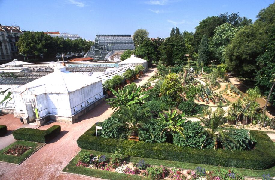 * LE JARDIN BOTANIQUE : entrée Avenue Verguin. Il était situé auparavant sur les pentes de la Croix-Rousse. Créé en 1795, ce jardin de la Déserte devenant trop étroit fut transporté au parc de la Tête d'Or en 1857, 4000 plants du jardin furent déplacés, l'Orangerie fut remontée pierre par pierre. Il comprend : - JARDIN DE PLEIN AIR : ouvert toute l'année 8h-17h (18h avril à sept). Il comprend plusieurs jardins dont l'Ecole Botanique (disposée par familles), l'arboretum, la fougeraie, la roseraie historique (360 variétés), le jardin mexicain (d'avril à oct). - JARDIN ALPIN : ouvert de mars à oct 8h-11h30. 1700 espèces montagnardes. - SERRES DE COLLECTION sont fermées au public jusqu'en février 2021: (normalement ouvertes toute l'année 9-16h30 (17h30 d'avril à sept)). 6000 m², plus de 1000 espèces d’orchidées et plantes carnivores. Inscrites aux Monuments Historiques, elles furent construites en métal en 1880 (étaient auparavant en bois, mais résistaient mal à l'atmosphère humide) par l'architecte Domenget. La grande serre est une véritable cathédrale de verre et d'acier et son pavillon central s'élève à 21m (la + haute de France). Reconstruite en 2000, de nouvelles allées ont été créées et les massifs organisés par continent. - SERRE DE MADAGASCAR : ouverte toute l'année 9-11h30/13h30-16h30 (à 17h30 d'avril à sept). 400 m², 200 espèces de plantes de Madagascar. Face aux serres, se trouve la STATUE de Bernard de Jussieu, botaniste du XVIII° s qui travailla au jardin du roi Louis XV. * Dans la FERME LAMBERT (ancien bâtiment de l'Observatoire, vers la plaine africaine) : ouverte aux heures de bureau, comprend un HERBIER de 200 000 parts, une COLLECTION de 15 000 taxons ( mot général pour familles/genres/espèces), une GRAINETERIE de plus de 1000 taxons, un LABORATOIRE de conservation des plantes les plus rares et une BIBLIOTHEQUE de 6000 ouvrages et revues. VISITE EN AUTONOMIE : Partez à la découverte des richesses du Jardin botanique en autonomie grâce à nos tous nouveaux circuits de visite sur smartphone...