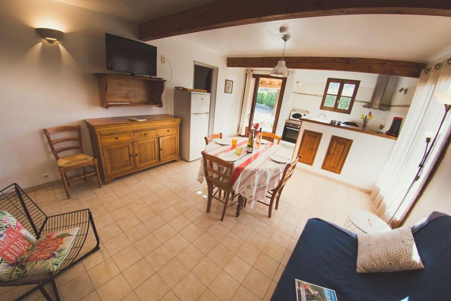 Le gîte Le Murier, de construction contemporaine est aménagé en rez de chaussée, attenant à un bâtiment agricole (silencieux pas d'activité entre mars et novembre). Il se compose d'un séjour, coin cuisine tout équipé et un coin salon canapé avec TV et connexion internet par wifi. Cheminée avec insert bois fourni gratuitement. Une chambre (1 lit 2 personnes en 140 cm X 190 cm), d'une autre chambre ( 1 lit 2 personnes et 1 lit 1 personne en 90cm X 190 cm). Salle de bain (douche à l'italienne), WC indépendant. Climatisation réversible. Terrasse couverte et ombragée. Garage. Possibilité de location de canoés kayaks sur place. La piscine est commune aux 4 gîtes, dimension 10mX5 m prof. Maxi 1.60 m. Un équipement bébé est à disposition dans le gîte. Grands commerces à 9 km. A proximité de la route départementale D579. Vous pourrez appréciez le très beau village de caractère de Balazuc, classé parmi « les plus beaux Villages de France ».
