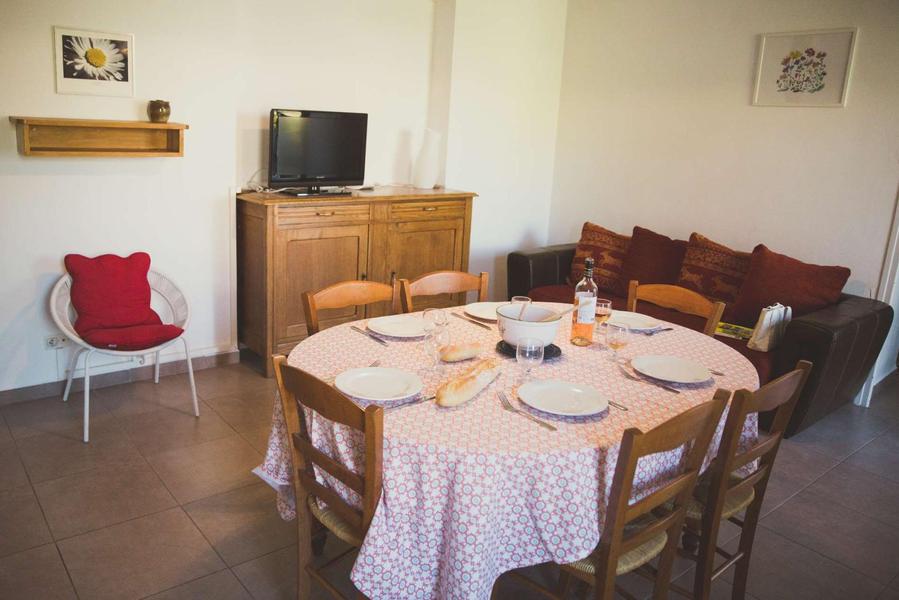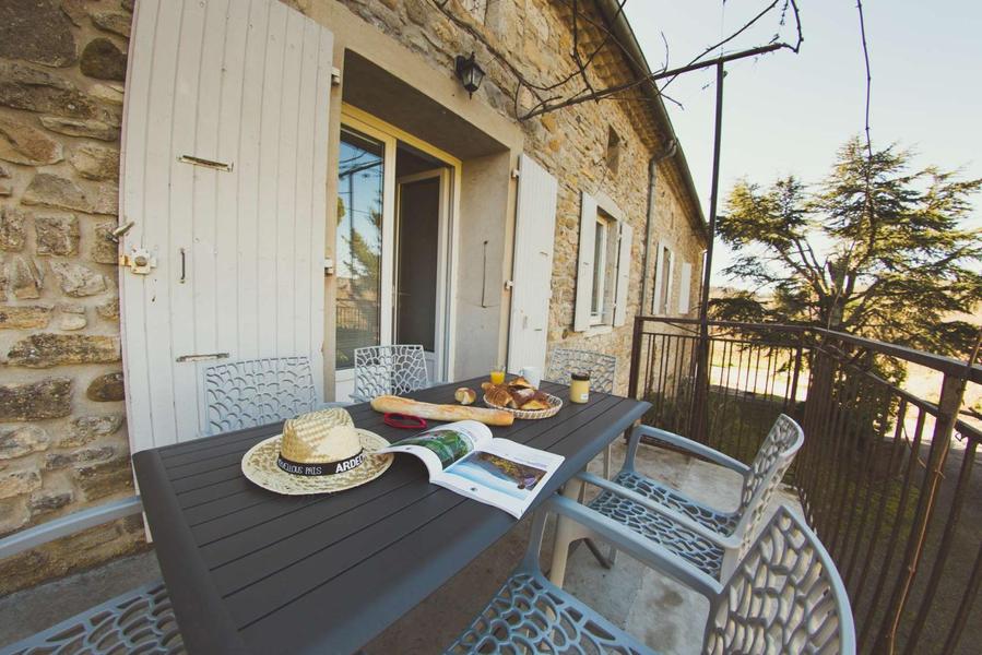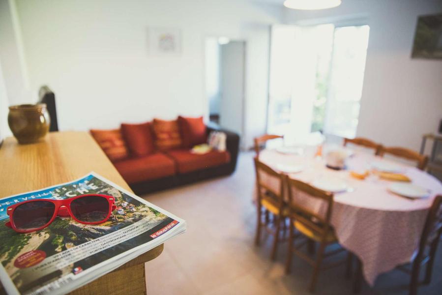 A 50 mètres ouverture d'une piste cyclable, voie verte aménagée sur l'ancienne voie ferrée « via Ardèche ». Et toujours découvrez notre région et nos villages de caractères ! Ce gîte La Fenière se trouve au 1er niveau dans une ferme restaurée en pierre composée de 4 gîtes. Il dispose d'une terrasse ombragée. A l'intérieur il est composé d'un séjour avec coin cuisine équipé, d'un coin salon avec canapé, d'une chambre (1 lit 2 personnes ), d'une autre chambre (1 lit 2 personnes et 1 lit 1 personne), salle de bain (douche à l'italienne), WC suspendu indépendant. Le chauffage est électrique. Vous pourrez appréciez sa grande cour commune ainsi que son jardin commun. Un garage fermé privé avec lave-linge est à votre disposition. Possibilité location de canoés kayaks sur place. La piscine est commune aux 4 gîtes, dimension 10m X 5 m profondeur maxi 1.60 m. Un équipement bébé peut vous être fourni sur demande.