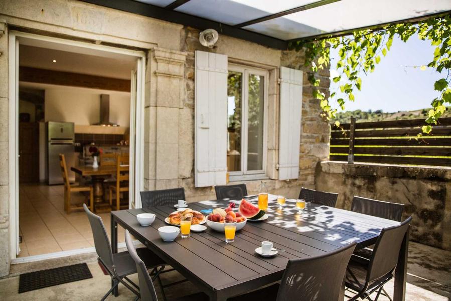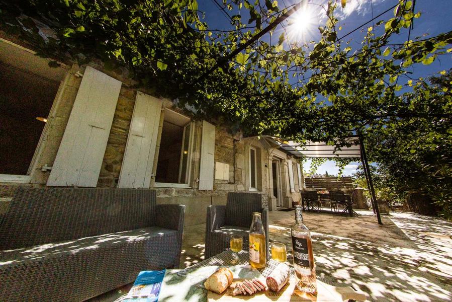 Agréable terrasse ombragée par la vigne