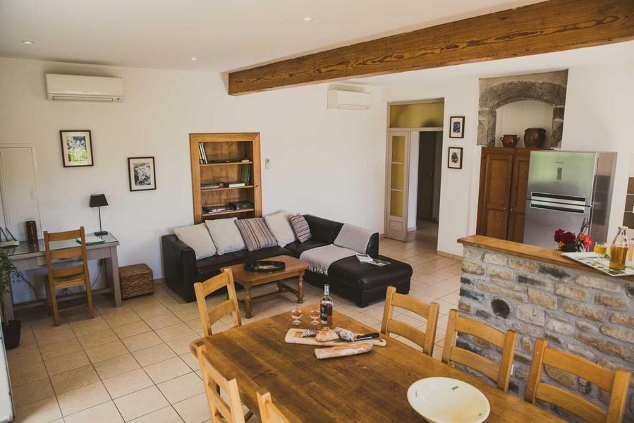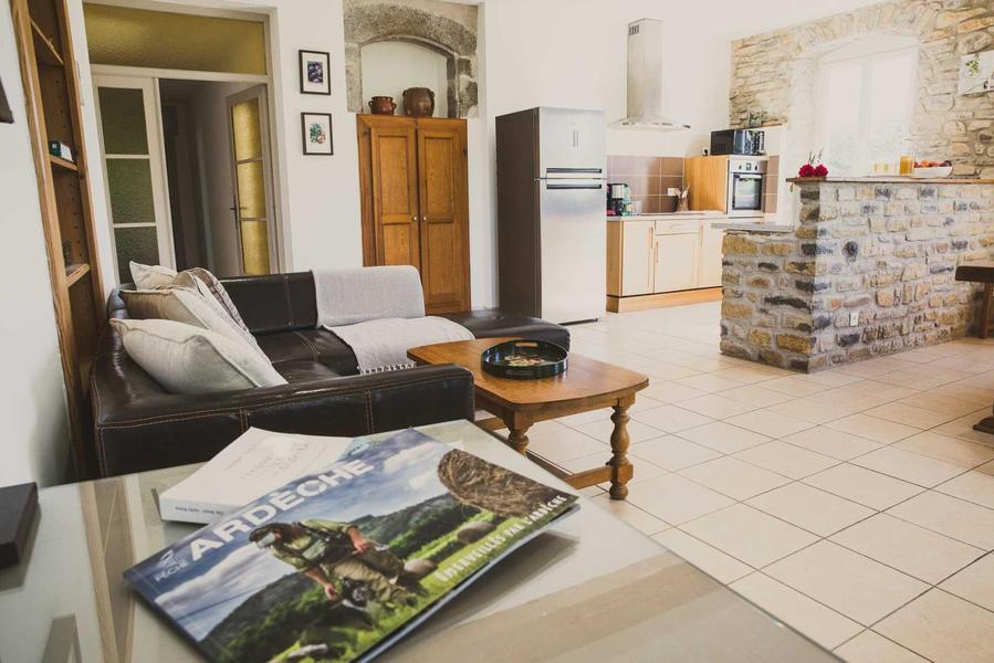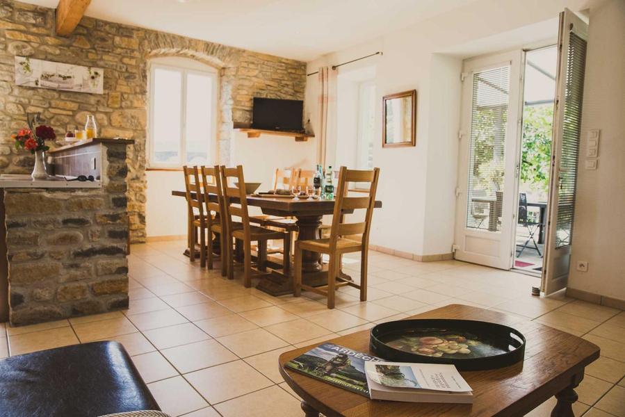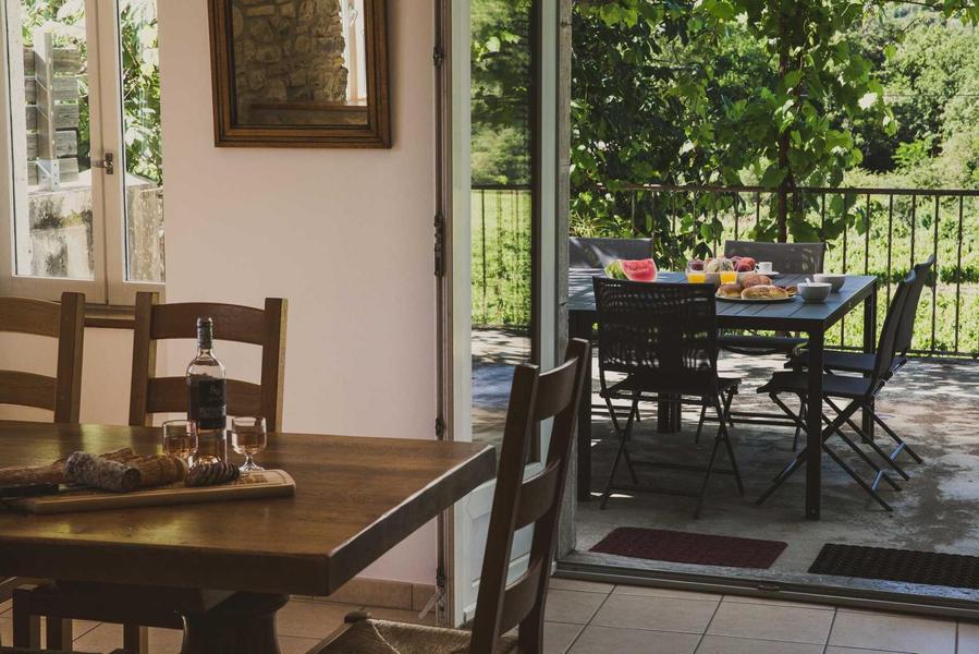 A 250 m de l'Ardèche et à 1.5 km du séduisant village de caractère de Balazuc, sur une exploitation viticole, nous vous proposons de venir séjourner dans notre grand gîte aménagé dans la partie la plus ancienne de notre ferme.