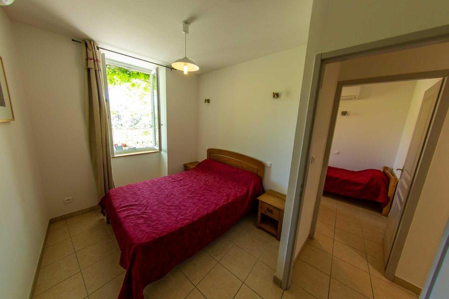 Le Gîte 'les marronniers' à l'étage, est de grand confort avec une grande terrasse de 65 m² entièrement fermée. Il se compose d'un séjour, coin cuisine intégré, coin salon avec canapé d'angle et TV écran plat. Pour votre confort, 5 chambres ont été crées : 1 chambre avec 1 lit 2 personnes en 140 cm X 190 cm avec un très joli carrelage, 1 chambre (1 lit 2 personnes avec son sanitaire privatif (douche, meuble de toilettes et WC suspendu), 1 chambre (1 lit 2 personnes, 1 lit 1 personne et 1 lit gigogne en appoint, 1 chambre (2 lits 1 personne en 90 cm X 190 cm), 1 chambre (1 lit 2 personnes), salle d'eau avec WC et salle de bains, un 3 ème WC, gîte climatisé été/hiver. Possibilité de location de canoë sur place. Les grands commerces se situent à Ruoms à 9 km. La piscine du propriétaire à disposition est commune aux 4 gites. Un équipement bébé est possible sur demande. A proximité de la RD579.